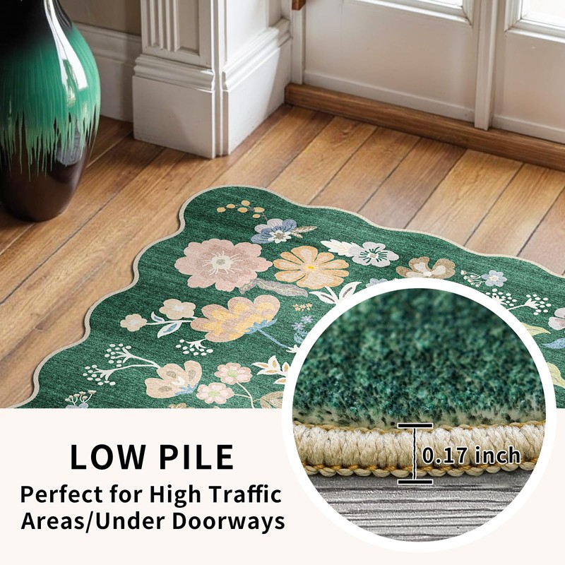 - Charming Floral Design – Cozy Vintage Style: This scalloped runner rug features elegant floral patterns, adding warmth and charm to any space. Its retro design easily complements a variety of home decor styles, creating a cozy and inviting atmosphere. No matter where it's placed, this 2x8 rug will make your home feel more welcoming