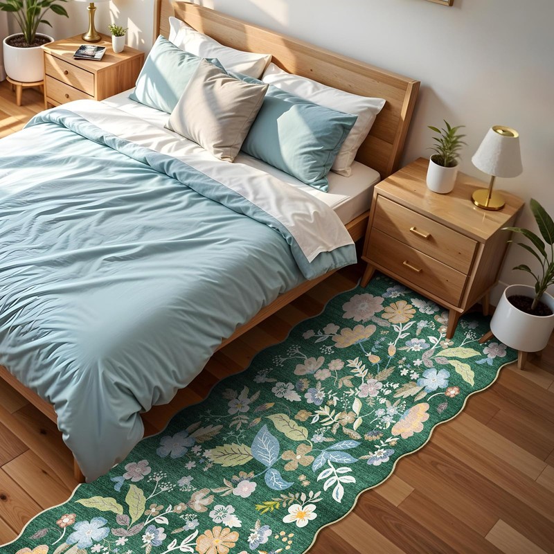 - Rug Care Tips:When your floral runner rug arrives, it may have some creases—this is completely normal. The creases will fade with regular use over a few days. To speed up the process, place a warm towel over the creases, then use an iron on low heat or steam mode to gently press over the towel for a few minutes. For daily cleaning, set your vacuum to low power or use a high-clearance nozzle