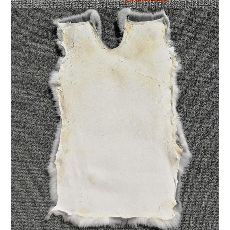 - PERFECT FUR FOR CRAFTS & MORE This natural gray+yellow tan rabbit pelt measures approximately 10" by 12" and is sewing grade quality. Rabbit pelts make great liners for parkas, hats, and mittens. They're also great for crafting, making stuffed animals, sewing doll clothes, and using as trim on many clothing items.