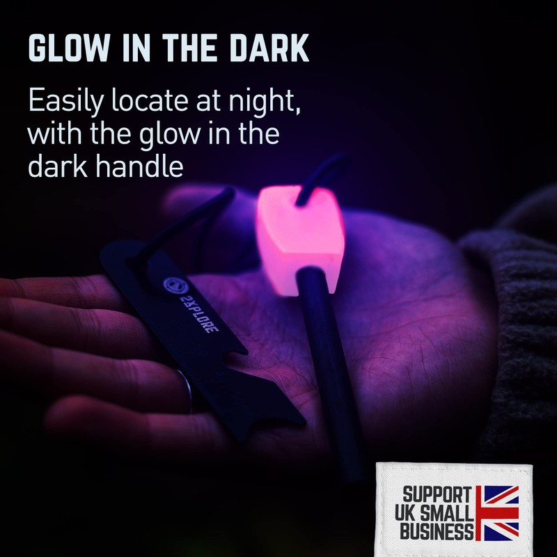- GLOW IN THE DARK HANDLE- Easily locate your fire striker at night with it's pink glow in the dark handle. This fire starter handle is easily seen against your other bushcraft equipment.