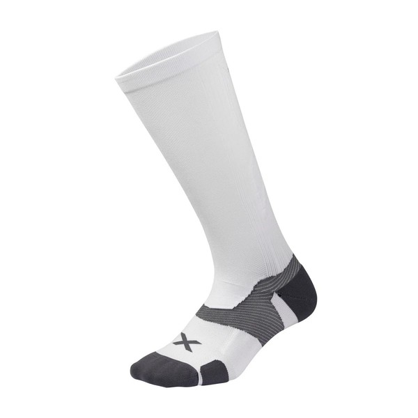 2XU Unisex Vectr Cushion Full Length Socks Compression Sock - White/Grey, L2