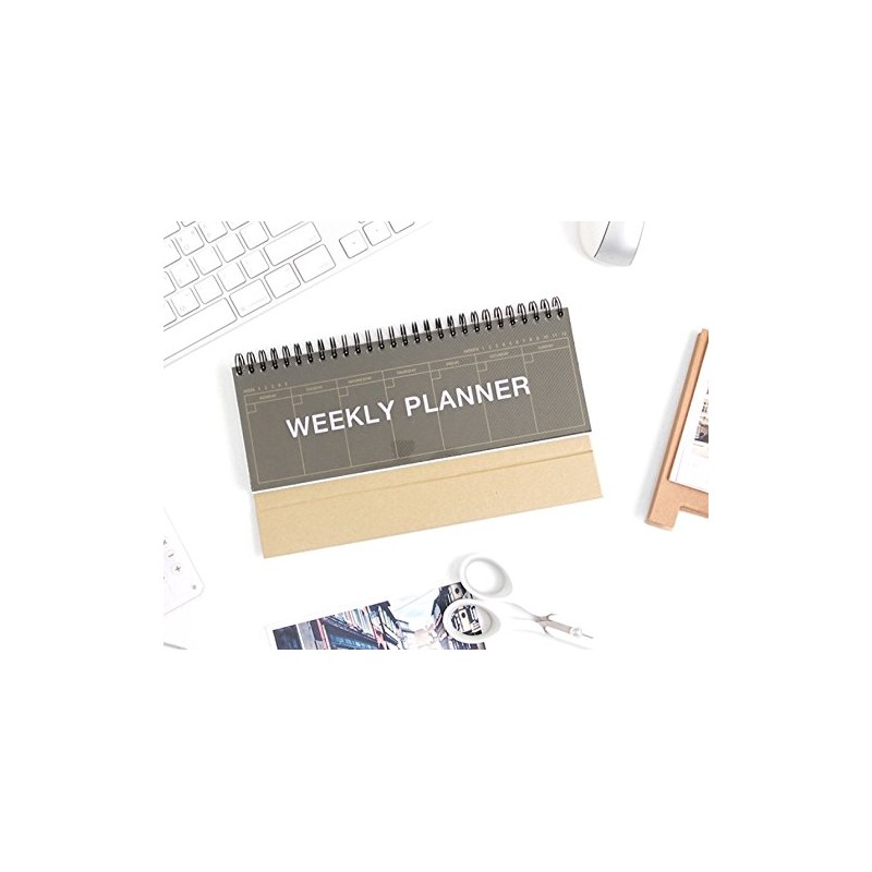 2YOUNG Kraft Standing Weekly Planner - Wirebound Kraft Undated Weekly Desk Planner Scheduler (Dark)