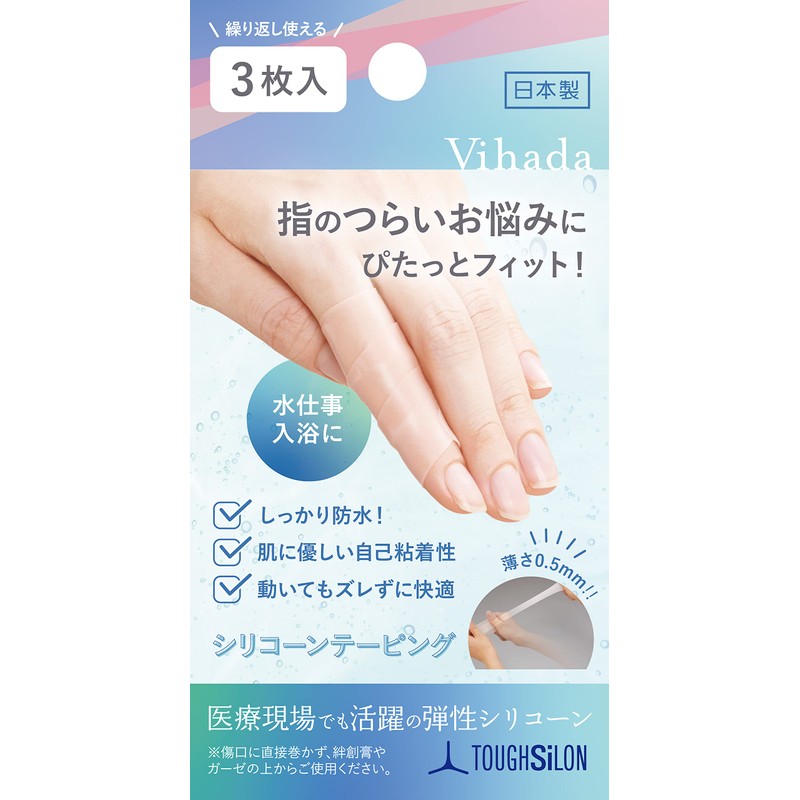 - 防水とテーピングを合わせた指用シリコーンテーピング。手荒れ対策として、絆創膏の上から指先をテーピングし防水に役立ちます。