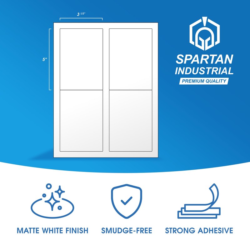 3 1/2" X 5" Matte White Printable Labels Compatible with Inkjet and Laser Printers - 500 Sheets, 2000 Stickers for Shipping, Mailing, and Organization - Spartan Industrial