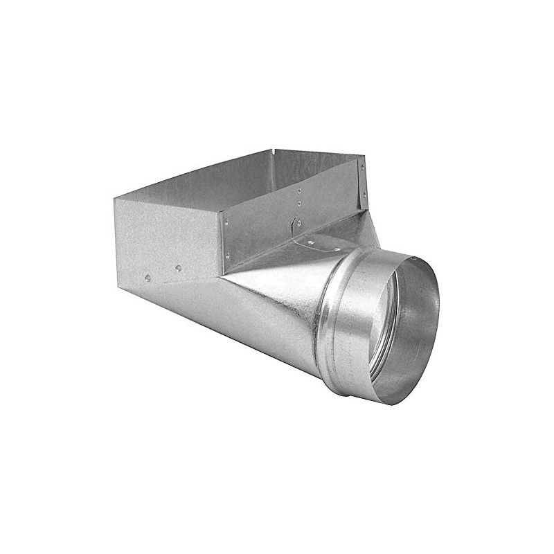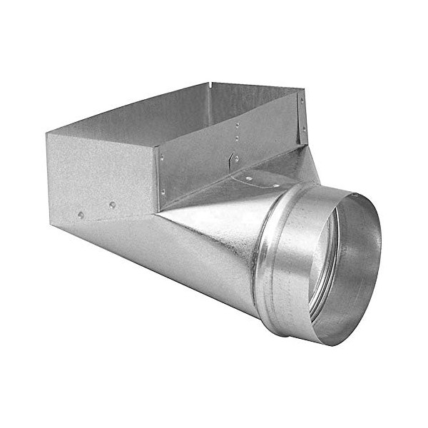 Used for right-angle transition from round pipe or insulated flexible duct to a register or grille.