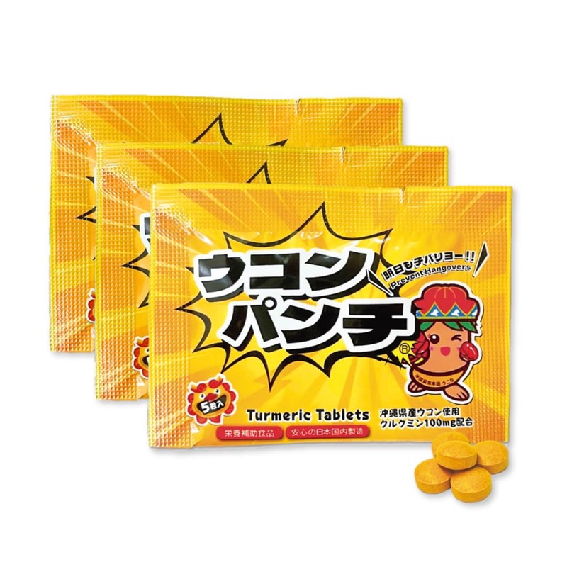 ウコンパンチ3包セット 宴会 お付き合いが多い 翌日対策 沖縄県産ウコン クルクミン類100mg ビタミンB群 ナイアシン 明日もチバリヨー!! (3)