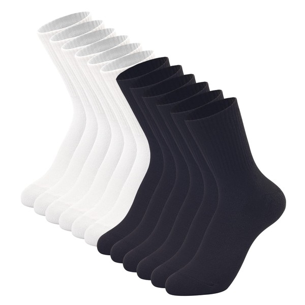 - [MUST HAVE]3/6/10/12 pairs a pack black white crew socks,super cheap and high quality.Basic color ,classic style,black and white mixed pack. You can wear it outdoor sports, running, fitness, hiking, any type of workout, or indoor everyday use.