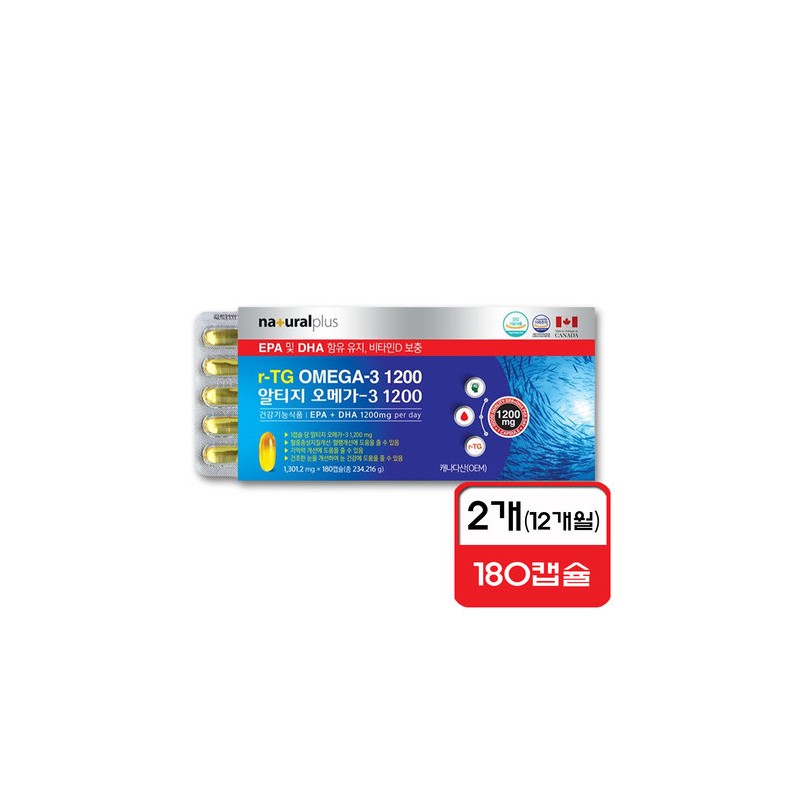 내츄럴플러스 알티지 오메가3 1200 1301.2mg x 180캡슐 x 2개(12개월) Gg