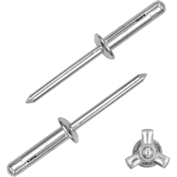 3/16" x 3/4" Tri-Fold Rivets Assortment - 150Pcs,Silver Tri-fold Exploding Pop Rivets Solid Aluminum Tri Grip Rivets Bulb Style Rivets for Kayak Marine Boat