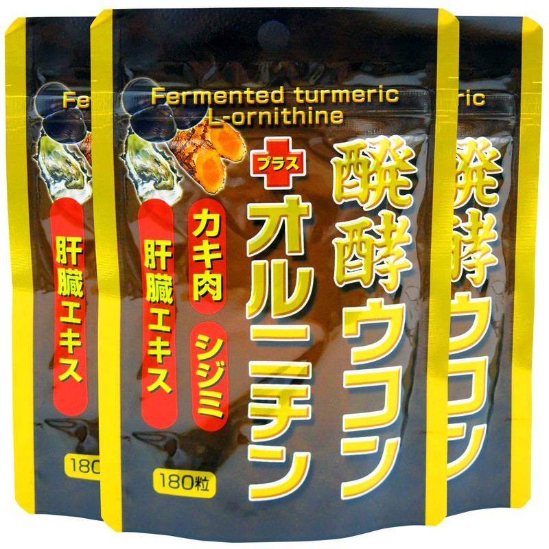ユウキ製薬 醗酵 ウコン オルニチン 3個セット 180粒 約66-90日分 サプリ 発酵 うこん 牡蠣 しじみ 肝臓加水分解