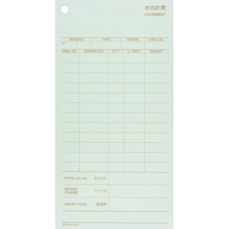 ヒサゴ お会計票3枚複写 税サービス付(200セット入) 3231