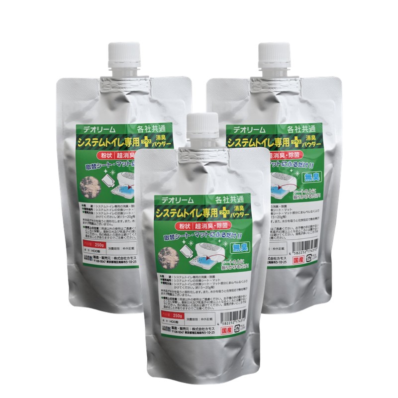 カモスバクテレス【デオリーム猫専用/システムトイレ用消臭粉 3本セット】システムトイレ専用/プラス消臭パウダー /250g