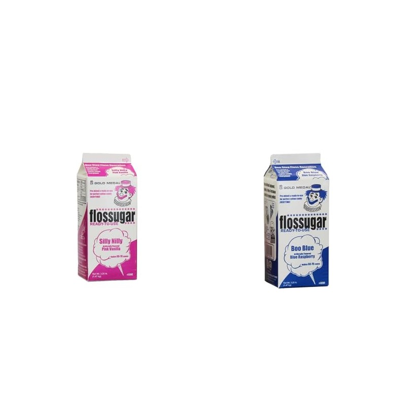 - 3.25lb -Cotton Candy Floss Sugar (2 Pack)- Pink Vanilla and Blue Raspberry. Ready to Use. Each Carton Made From Paper Earth friendly Carton.