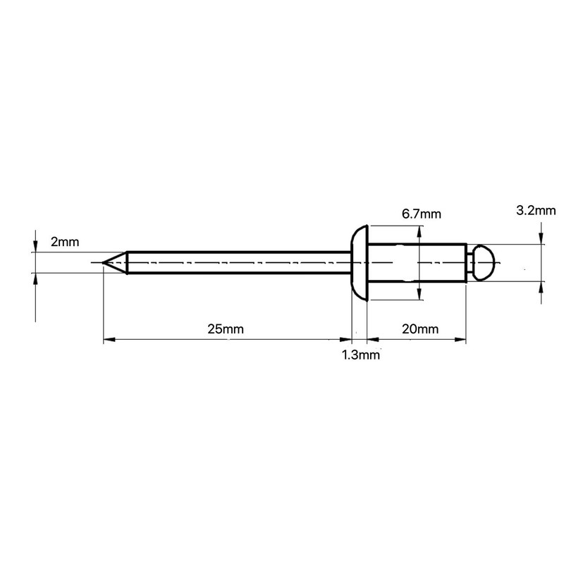 3.2mm x 20mm Blind Pop Rivet Dome Head Aluminium/Steel Shaft (Pack of 20)