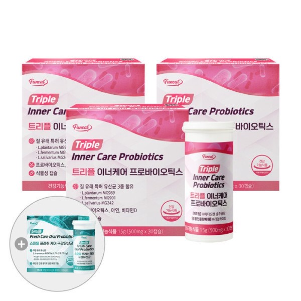 여성 질 유래 유산균 트리플 이너케어 프로바이오틱스 3박스 (3개월분) +구강유산균 1병 증정 / 여성 질 유래 유산균 트리플 이너케어 프로바이오틱스 3박스 (3개월분) +구강유산균 1병 증정