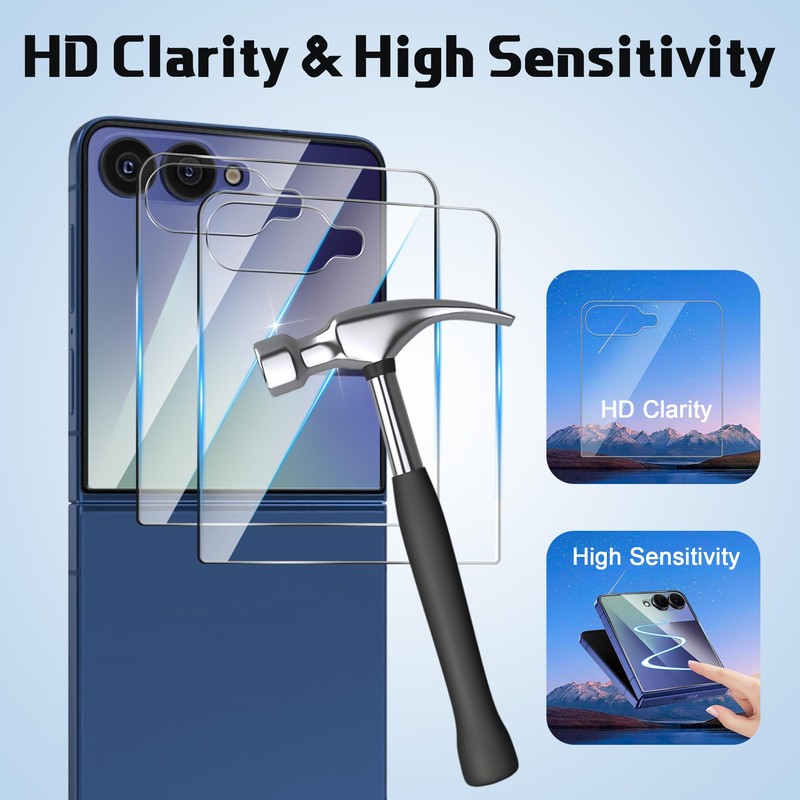 - 【Ultimate Protection】This package includes 3 Inner TPU Films, 3 Outer Tempered Glass Protectors and 2 Camera Lens Protectors to ensure cmplete coverage for your Galaxy Z Flip 7.