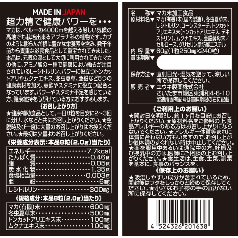 ユウキ製薬 超力精 3個セット 3ヵ月分 240粒 サプリ 有機マカ 冬虫夏草 シトルリン トンカットアリ ムクナ 亜鉛