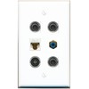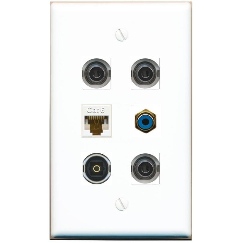 3 3.5mm CAT6 RCA-Blue TOSLINK Flat/Solid Wall Plate [White]