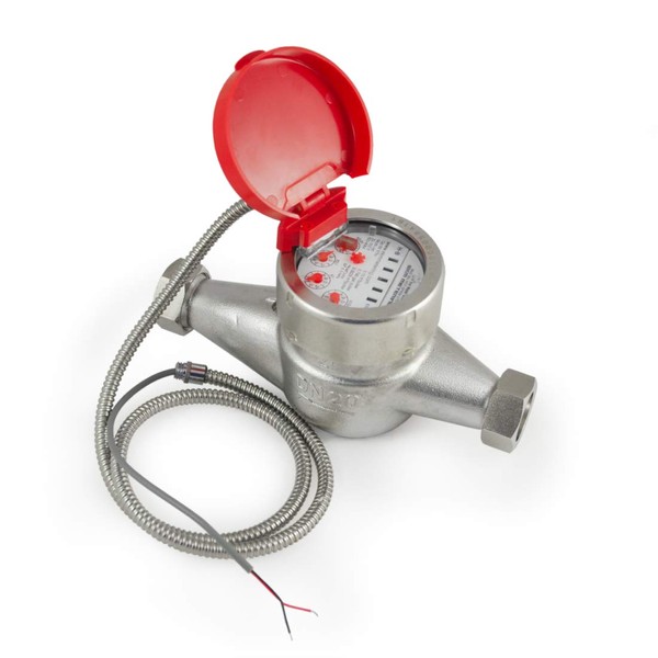 This is a well made, industrial grade, stainless steel(201 grade) water meter. You can use it as a traditional water meter, where the water consumption is read off of the dials on the face of the meter. It also has the added functionality of being able to connect the pulse-output wires to a pulse counting device. This water meter produces one pulse for every 1/10 cubic foot (approx 0.75 gallon, or 2.83 liters) that flows by the meter. These pulses can be then picked up and counted by our pulse counting devices.