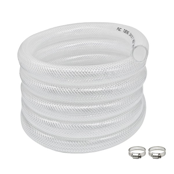 3/4" ID x 1" OD - 10 Ft High Pressure Braided Clear PVC Vinyl Tubing Flexible Vinyl Tube, Heavy Duty Reinforced Vinyl Hose Tubing