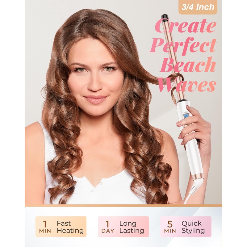 - Safe, Durable, and Timeless Design: For your peace of mind, the curling iron has a built-in 60-minute auto shut-off feature. The slim, ergonomic handle and lightweight design prevent fatigue during prolonged use. The 6.6ft long and 360° swivel cord offers flexibility and ease of maneuverability. Additionally, a heat-resistant glove is included, making it ideal for beginners.
