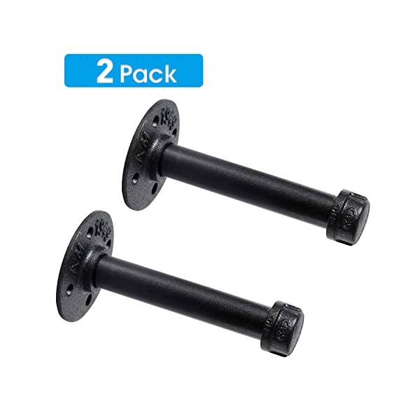 3/4" Industrial Black Iron Pipe Shelf Brackets, Rustic Wall Mounted DIY Shelving Brackets Hanging Custom Pipe Brackets for Floating Shelves (6 Inch, 2)