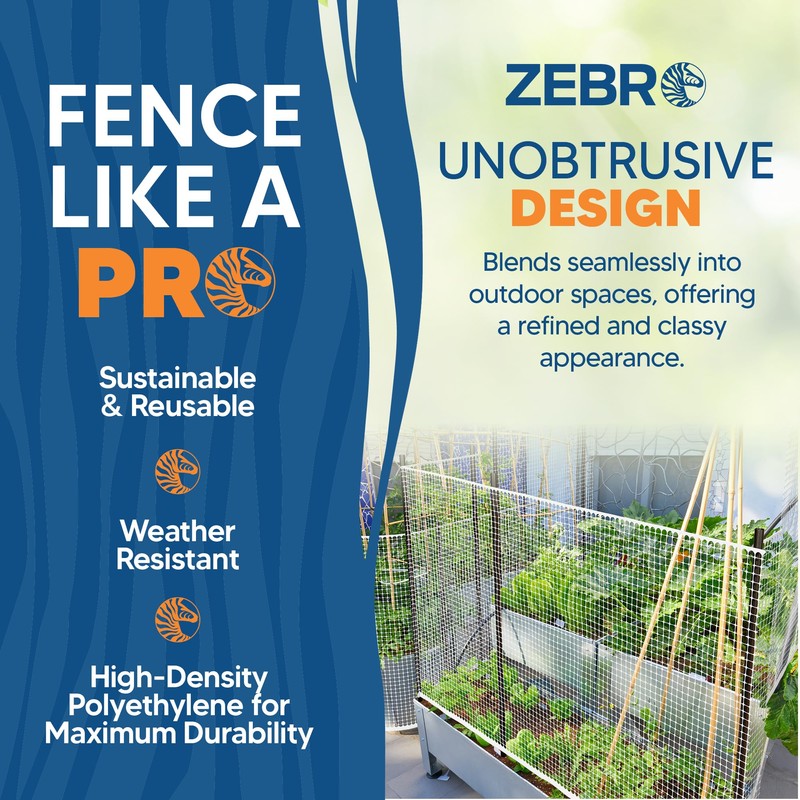 - UNOBTRUSIVE FENCING - This lightweight but sturdy HDPE plastic fencing comes in dark green, black or white to help protect your garden, yard areas and temporary animal pens without bright high visibility colors for a more refined and classy look. ANTI ANIMAL DESIGN - Create temporary non toxic animal enclosure pens for dogs, chickens and other farm animals. Or secure the bottom of the net to the ground to create an effective barrier against rabbits, deer and birds away from newly seeded plants and lawns.