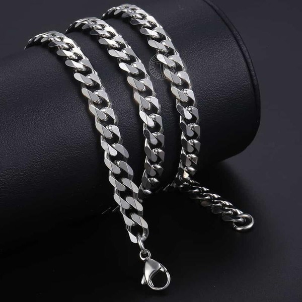 Features: 1.The cuban link chain is one of the most popular style chains! 2.These elegant chains are handcrafted in Stainless Steel. Solid and heavy feel. Measurement is about 16-30 inches in length and 3-11mm in width. These chains securely lock with a durable lobster clasp. 3.High quality stainless steel has high resistance to rust, corrosion and tarnishing. It will be very durable.