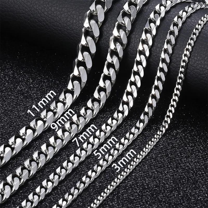 3/5/7/9/11mm Stainless Steel Silver Color Cuban Curb Chain Necklace Choker 16-30" for Men Women Daily Jewelry Birthday Anniversary Gift necklace - Chain Width: 7mm, Chain Length: 16 inches