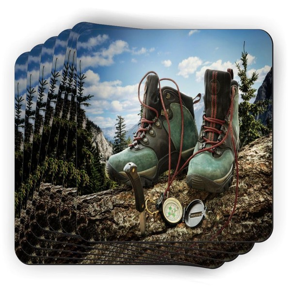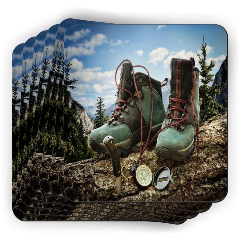 3.5 Inch Soft Square Coasters Art (x8)- Hiking Boots you're The with Compass Pink