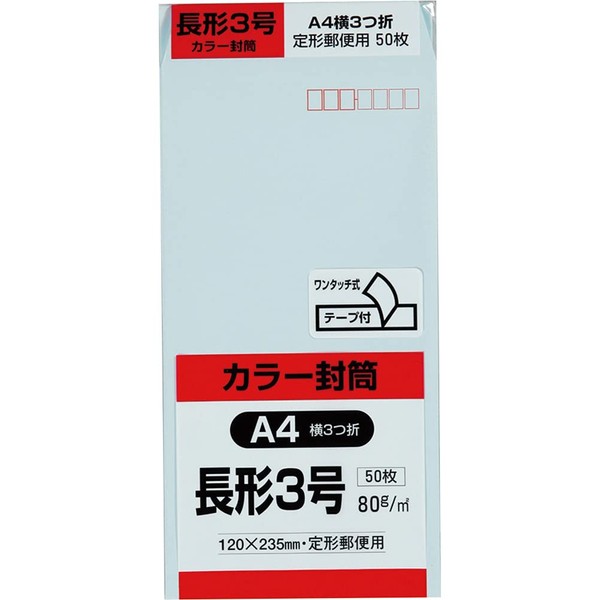 キングコーポレーション 封筒 ソフトカラー 長形3号 テープ付 50枚 ブルー N3S80BQ50