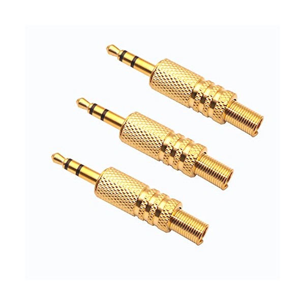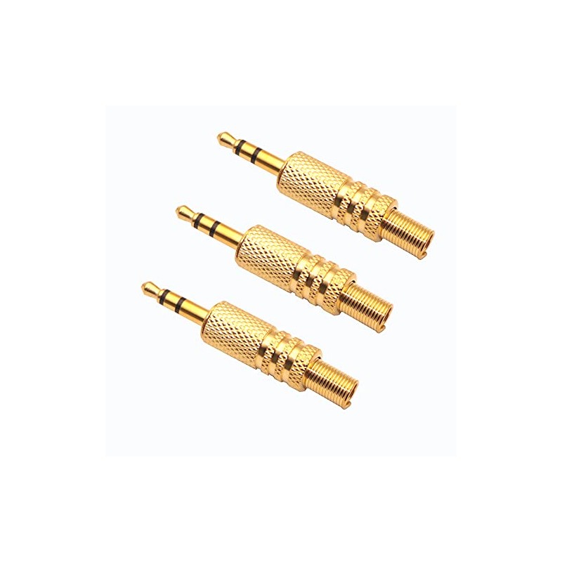 3.5mm/1/8 Stereo Male Plug Audio Cable Connector w/Spring Coax Cable Audio Solder Adapter 3-Pack