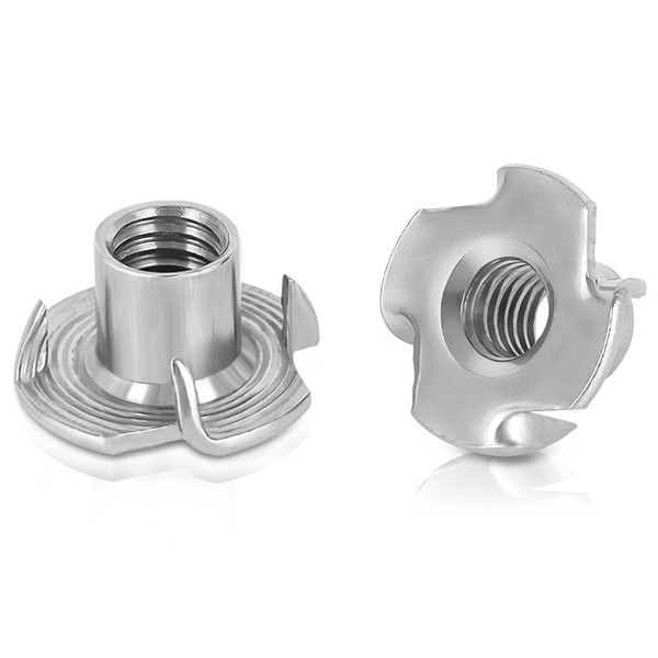 3/8"-16 T-Nuts, 304 Stainless Steel 4 Pronged Tee Nuts, Four-jaw Threaded Inserts for Rock Climbing Holds, Furniture, Cabinetry, Woodworking, Silver, 10 PCS
