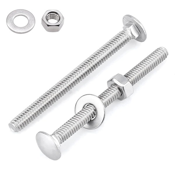 • Package Includes: 10 Pcs Carriage Bolts (3/8-16 x 5") + 10 Pcs Hex Nuts (3/8"-16)+ 10 Pcs 3/8" ID Flat Washers