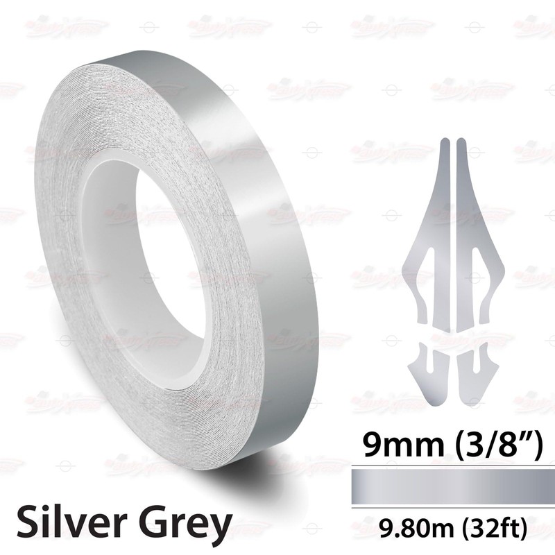 3/8" | 9mm Self-Adhesive Vinyl Pin Stripe Roll Decal Sticker Tape 32ft 9.80m - SILVER GRAY, Universally Compatible for Cars, Trucks, Vans, Motorcycles, Bikes, Helmets, Arts & Crafts