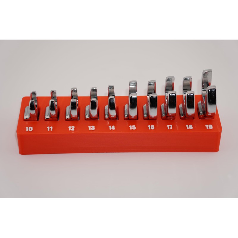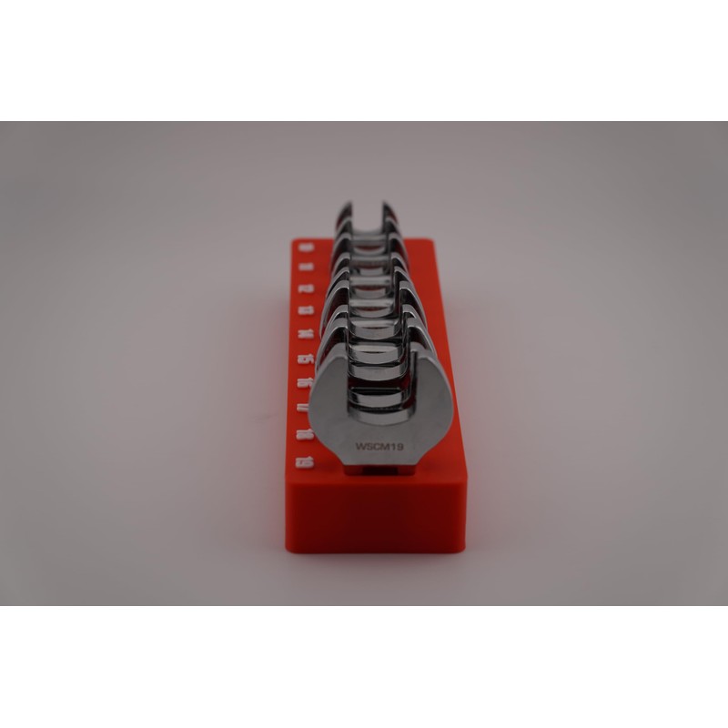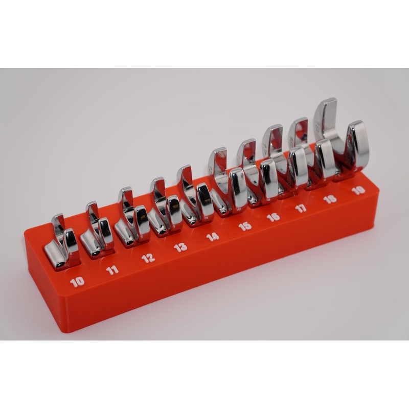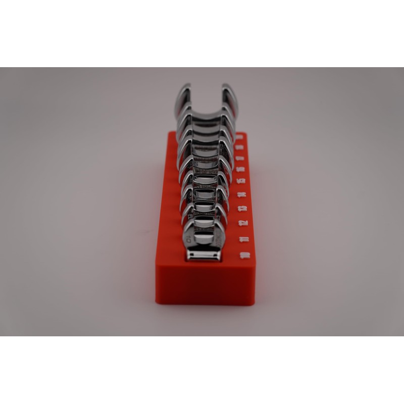 3/8 Inch Drive Metric Crowfoot Wrench Organizer Bin/Rack (Red w/White Lettering)