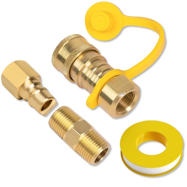 - 【3/8" NPT Thread Compatibility】:Equipped with 3/8" NPT male and female threads, this set of propane fittings is designed for use with low-pressure natural gas or propane systems. Please note that these fittings are not compatible with 3/8" flare threads, so ensure that your system is compatible with 3/8 quick connect fittings before purchasing.