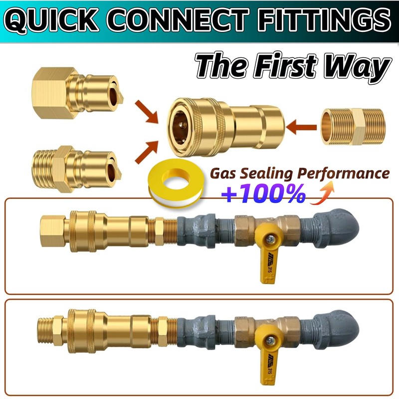 - 【Premium Solid Brass Construction】:Crafted from 100% solid brass, these quick connect hose fittings are highly durable and resistant to corrosion. The heavy-duty material ensures long-lasting performance in various gas systems, offering reliable service for both propane and natural gas setups.