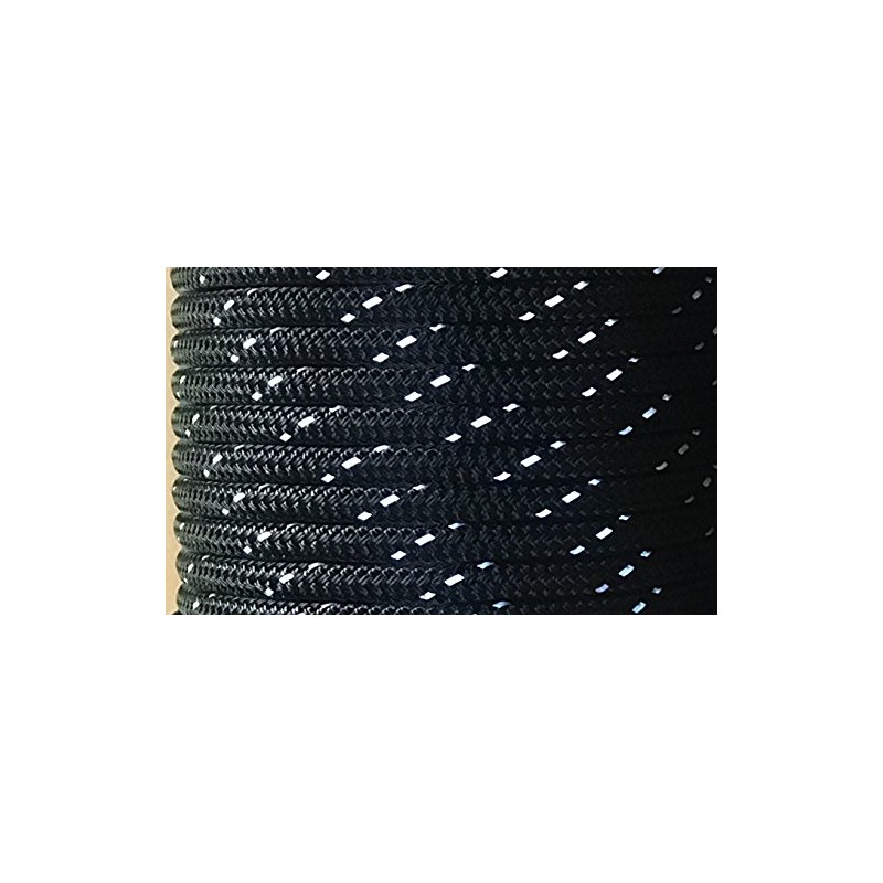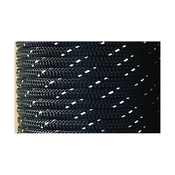 3/8" Premium Double-Yacht Braid Polyester Rope. Sailboat Rigging Line. Made In The U.S.A. (Black w/Reflective Tracers, 200)