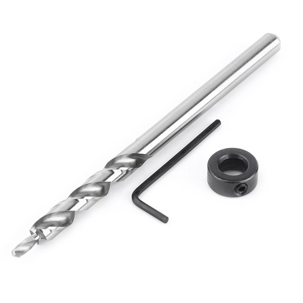 3/8" Twist Step Drill Bit Round Shank With Adjustable Depth Stop Collar For Manual Pocket Hole