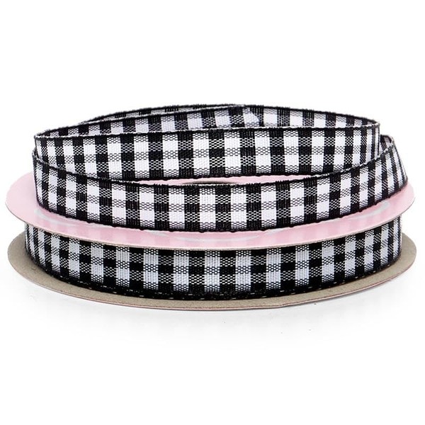 3/8" X 10 Yards Narrow Gingham Ribbon -Black/White Christmas - Add a touch of charm to your embellishments and decorative accents with a narrow gingham ribbon. Designed to enhance, this 3/8" ribbon features a classic checkered pattern woven into a lightweight fabric body. Its edges are finished with a coordinating embroidery thread for a seamless look. Narrow gingham ribbon is great for retail product display, gift giving, and crafts. Made of 100% Polyester.