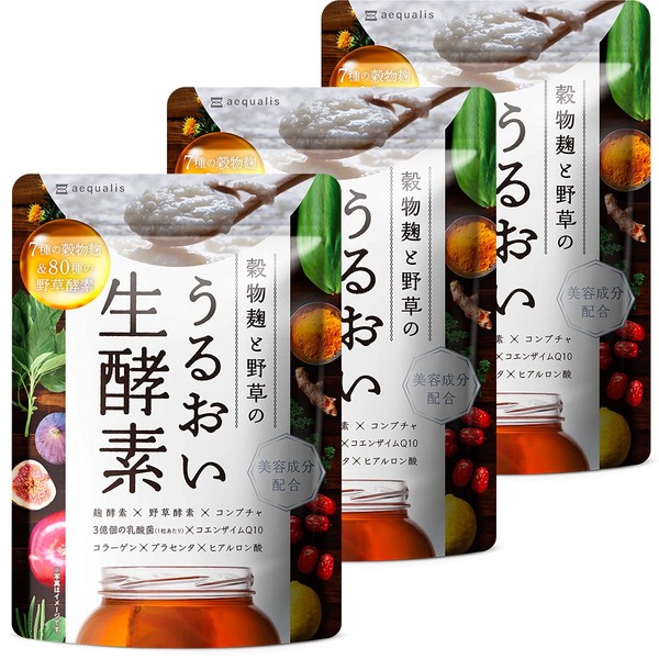【3袋セット】うるおい生酵素 サプリ コラーゲン ヒアルロン酸 コンブチャ 乳酸菌 酵素80種