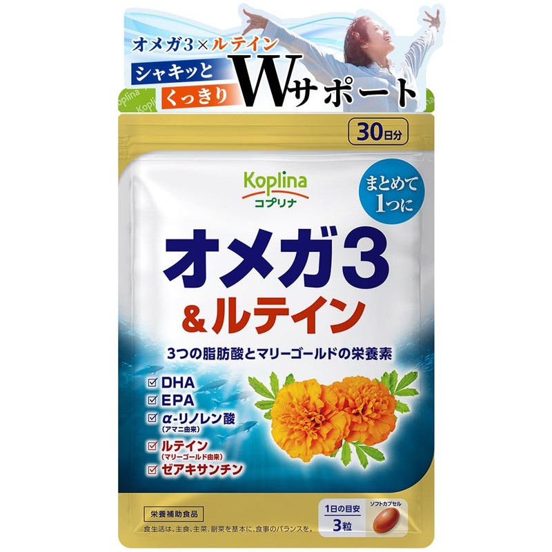 オメガ3&ルテイン 90粒 30日間 【DHA EPA αリノレン酸 ゼアキサンチン マグロ カツオ イワシ マリーゴールド由来フリー体ルテイン カロテノイド 魚不足 栄養バランス 健康 サプリメント コプリナ】
