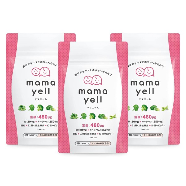 ママエール 3袋 90日分 葉酸 高配合 480μg 妊婦 妊娠 妊活 サプリメント 鉄 カルシウム ビタミン10種類 ミネラル 国産野菜22種 配合 1か月分×3袋セット