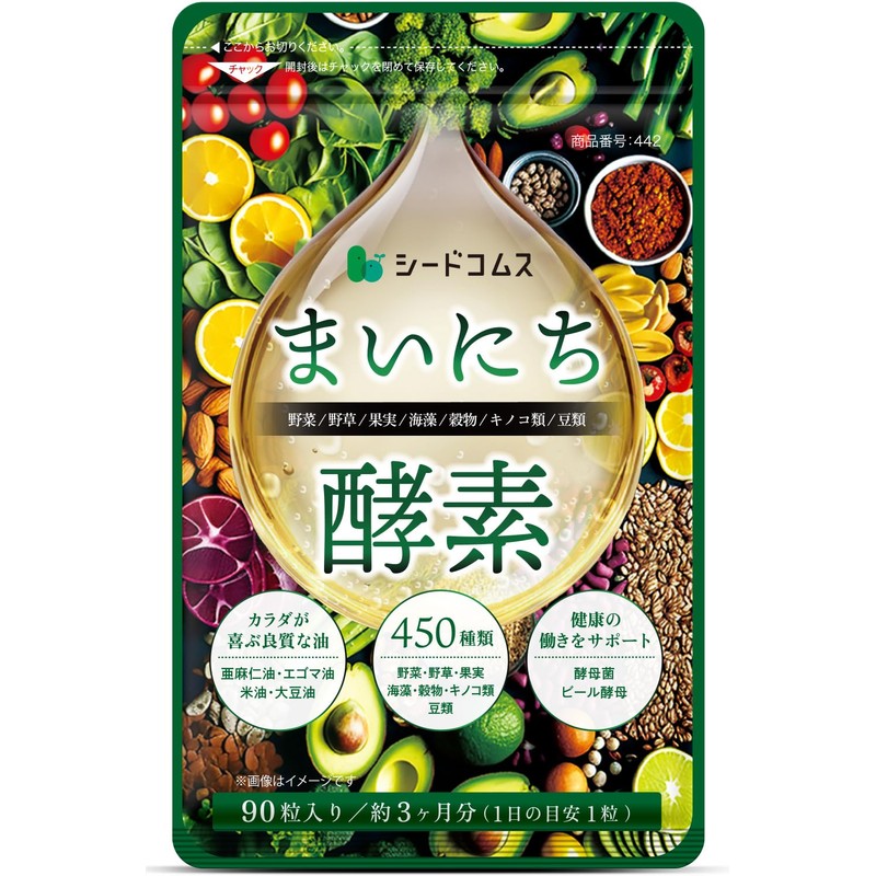 シードコムス まいにち酵素 約3ヶ月分 90粒 サプリメント 野菜 野草 果実 キノコ 豆類 海藻 ビール酵母 亜麻仁油 エゴマ油