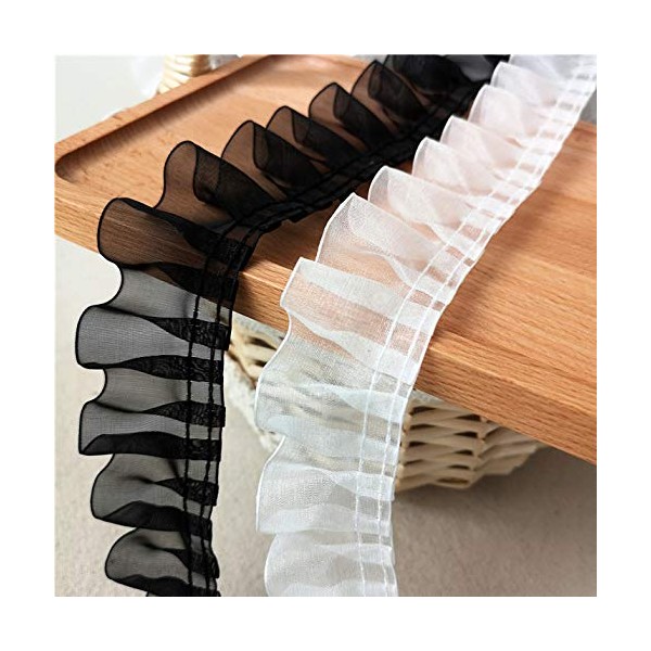 3.9cm Wide x 5 Yards Long Premium Chiffon Ruffle Lace (White)