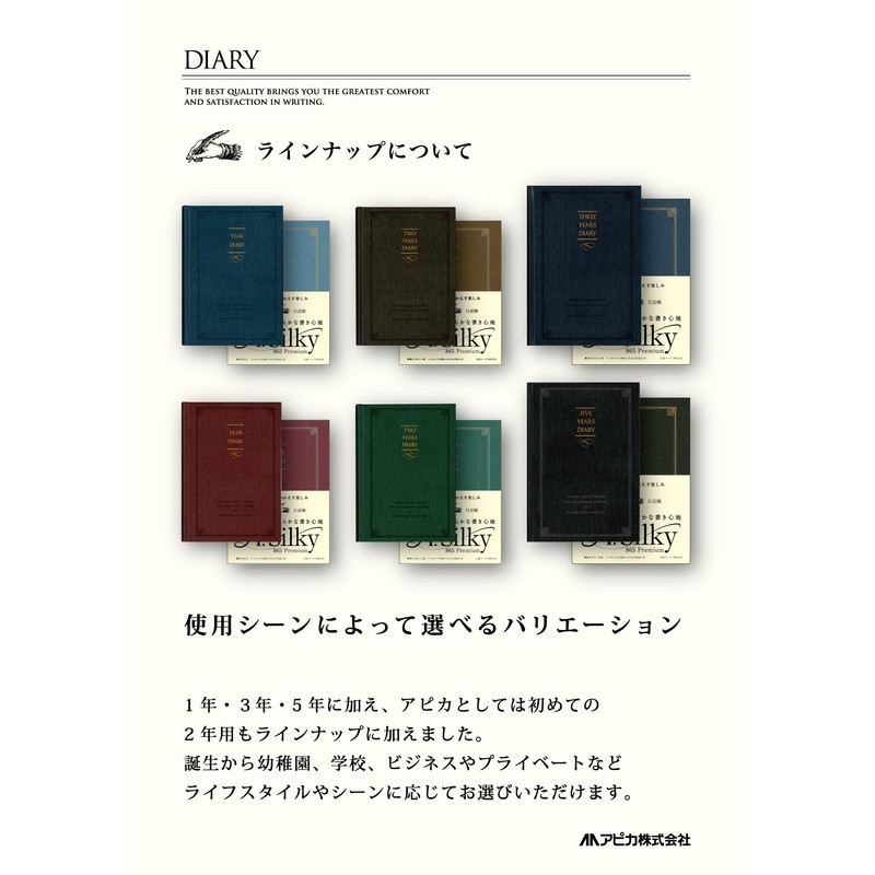 アピカ 日記帳 3年自由日記 横書き A5 ネイビー 日付表示なし D431-NV