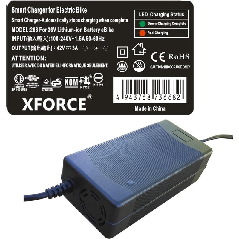 - 36V Battery Electric Bike 3 Amps Electric Bike Lithium-ion Battery Smart Charger - will automatically stop charging when battery is fully charged. Won't harm rechargeable battery.