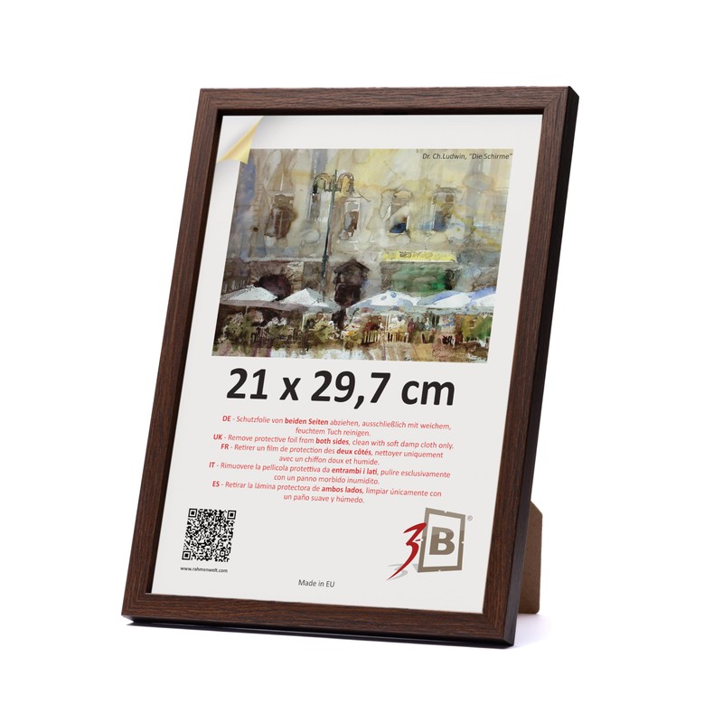 3-B Mega Picture Frame Dark Brown (Walnut with Optical Wood Grain) - 21 x 29.7 cm (A4) - Wooden Frame, Photo Frame, Document Frame with Acrylic Glass