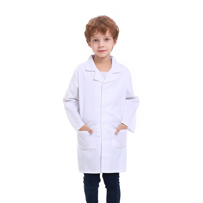 • Kids lab coat features button front closure and two front pockets